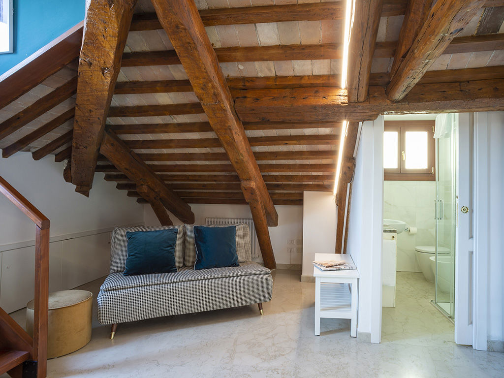 Attic room on the top floor, 4 beds with typical Venetian terrace. A proposal for those who want to enjoy a suggestive view of Venice